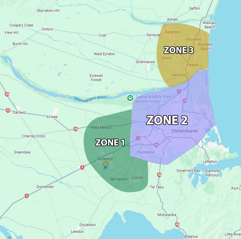 Rangiora, Woodend, Ohoka, Kaiapoi, Clarkville